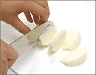 だいこん、きゅうりなど円形の野菜の切り方です。直角に包丁を入れて輪に切ります(煮ものなど)