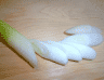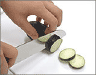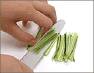 ねぎやきゅうりなど細長い野菜を端から切ります(薬味ねぎ、塩もみ、酢のものなど)