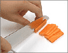 にんじんやごぼうなどをまわしながら斜めに包丁を入れ不規則なかたちに切ります(煮ものなど)